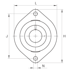 | 带两个螺栓孔的法兰的轴承座单元,铸铁, 偏心锁圈, P 型密封,无再润滑结构 |